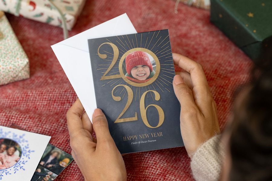 Que faire figurer sur votre carte de Noël : une grande nouvelle à annoncer pour 2026 ? Utilisez cette carte pour faire rayonner la bonne nouvelle : mariage, bébé en route, ou projets excitants à venir.