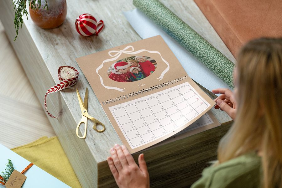 Envie de changer un peu ? Glissez d’autres souvenirs au fil des mois et gardez la photo en pyjamas de Noël pour décembre – la cerise sur la bûche.