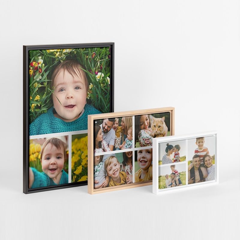 Bien sûr. Ajoutez jusqu’à 20 photos et notre outil de création génère automatiquement votre déco photo pêle-mêle. Réarrangez la disposition des photos jusqu’à ce que ça vous plaise et… hop, votre déco murale est prête à briller.
