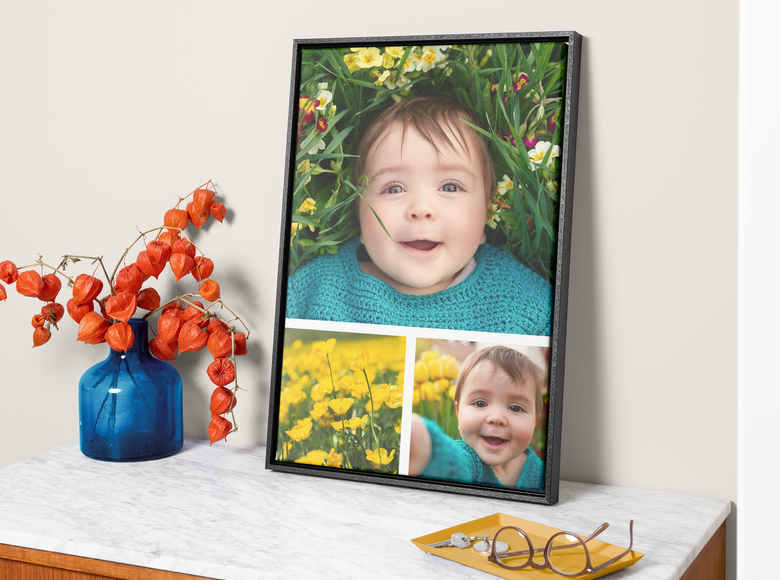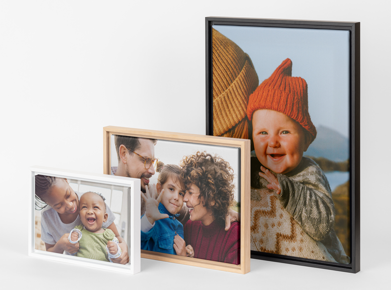 Notre solution pour redécorer votre intérieur sans tout chambouler ? La toile encadrée (ou cadre sur toile). Imprimées sur une toile 100% polyester et tendues sur un châssis en bois de 18 mm d'épaisseur, nos toiles photo encadrées sont conçues pour durer. Amusez-vous à personnaliser votre photo sur toile de votre cliché préféré, ajoutez un cadre pour toile flottant élégant proposé en blanc, noir ou naturel et le tour est joué.