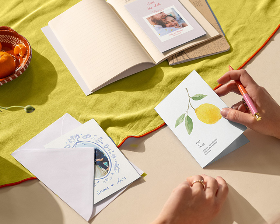 Des cartes save the date aux cartons d'invitation en passant par les mots de remerciement, créez une papeterie de mariage à votre image. Personnalisez-la avec des photos et du texte pour partager votre bonheur avec tous vos invités.